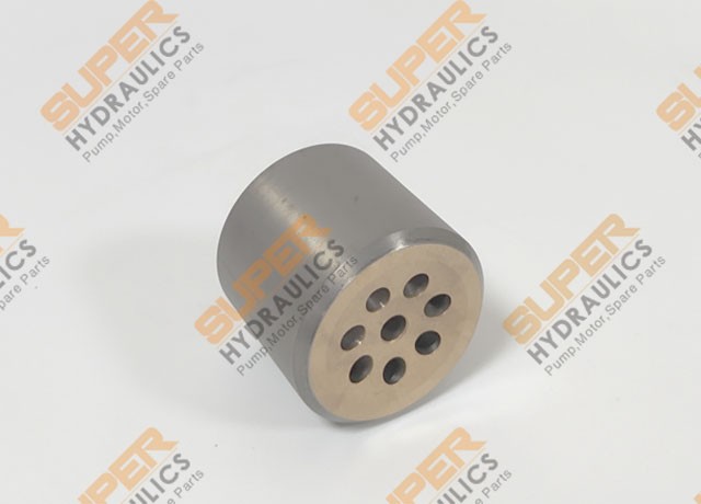 The high quality replacement Rexroth "A2FO12" barrel (cylinder block) is manufactured by "Super Hydraulics", which is suitable for aftermarket, pump repair use, with genuine design. All key dimensions and functions are completely interchangeable with original Rexroth "A2FO12" barrel (cylinder block), R909421299.