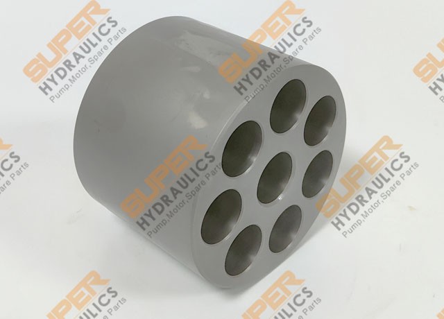 The high quality replacement Rexroth "A2FO125" barrel (cylinder block) is manufactured by "Super Hydraulics", which is suitable for aftermarket, pump repair use, with genuine design. All key dimensions and functions are completely interchangeable with original Rexroth "A2FO125" barrel (cylinder block), R909421310.