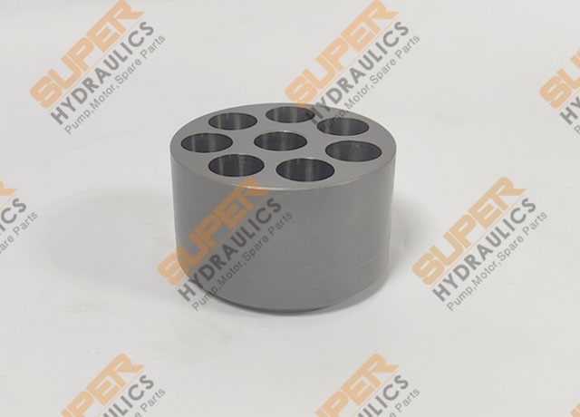 The high quality replacement Rexroth "A6VM28" barrel (cylinder block) is manufactured by "Super Hydraulics", which is suitable for aftermarket, pump repair use, with genuine design. All key dimensions and functions are completely interchangeable with original Rexroth "A6VM28" barrel (cylinder block), R909421291.