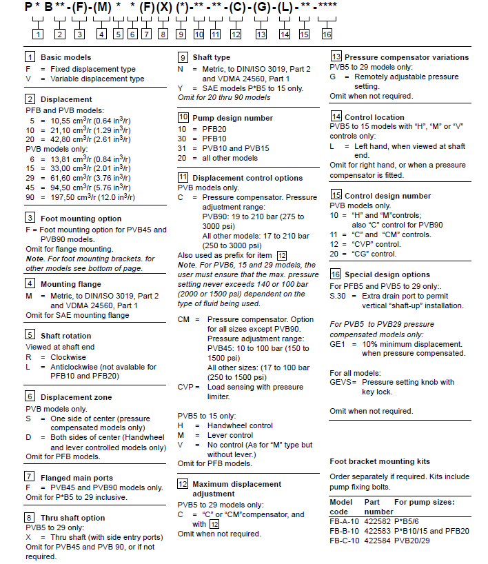 PVB Series Pump Order Code: